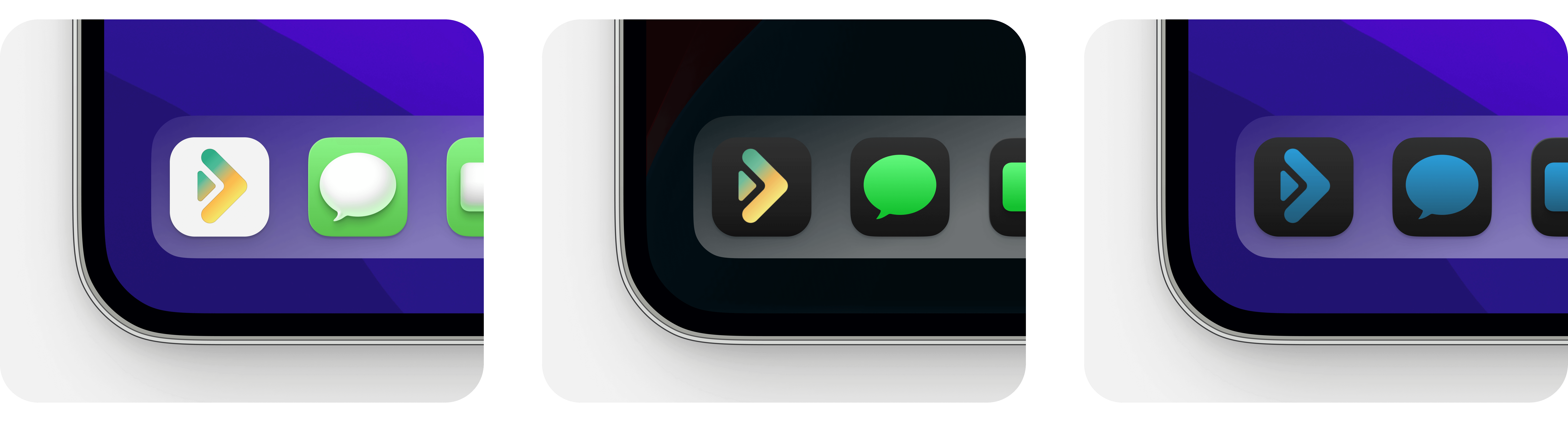 App icon design with light, dark, and tinted versions for iOS.